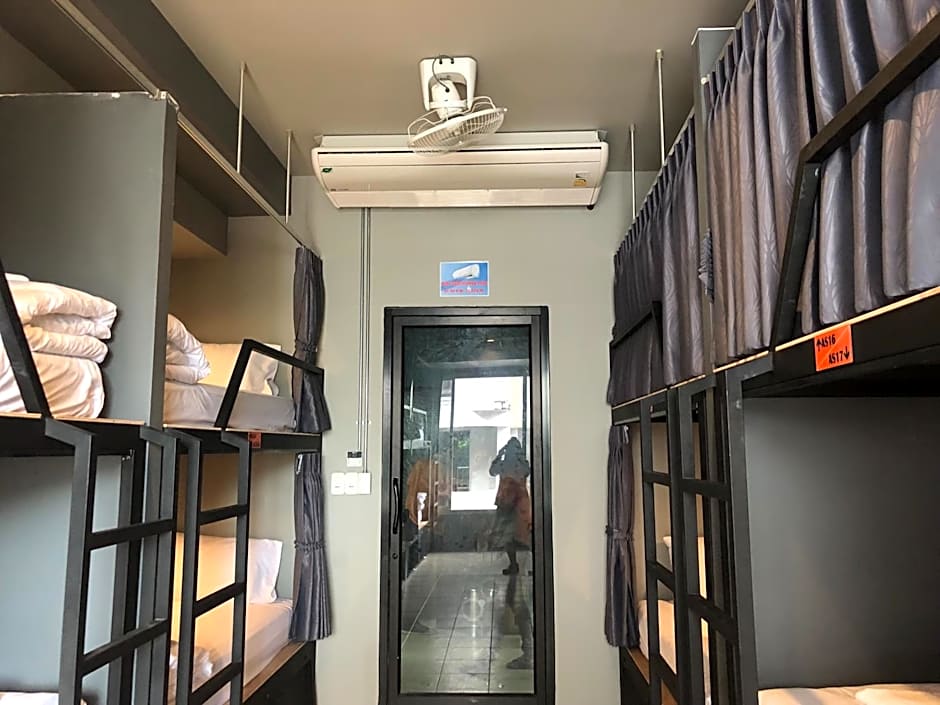 This bed in dormitory has a balcony and air conditioning.